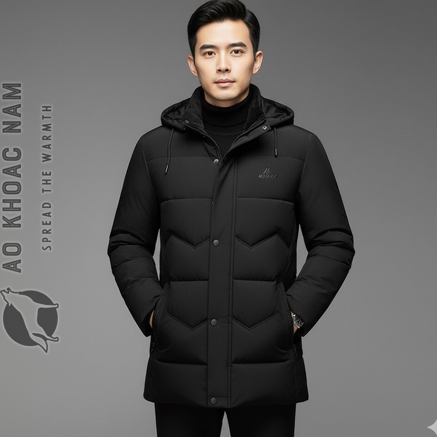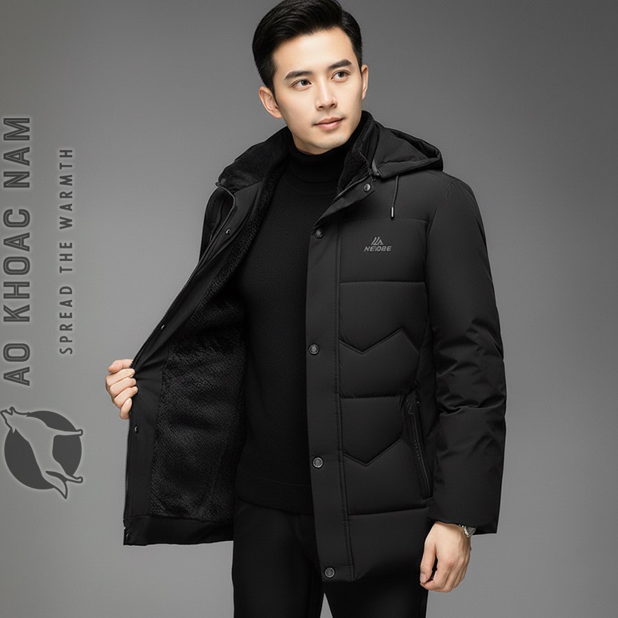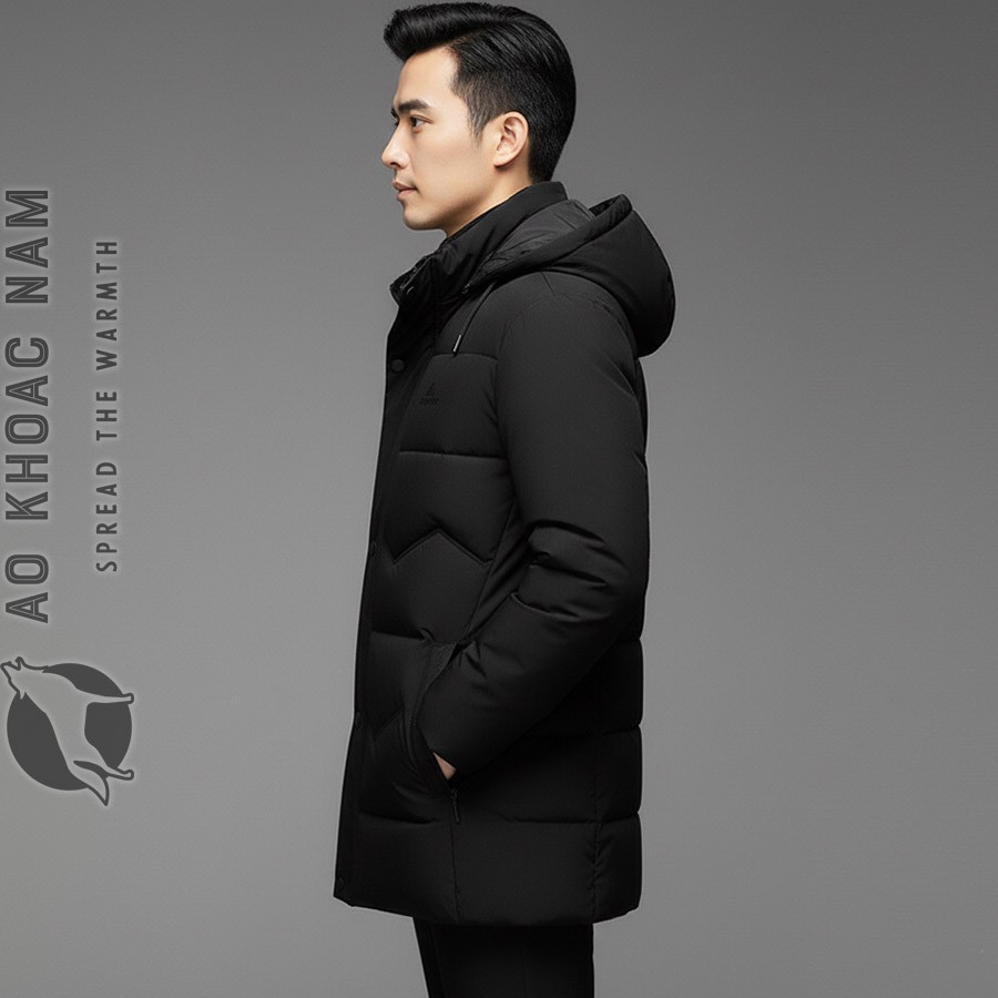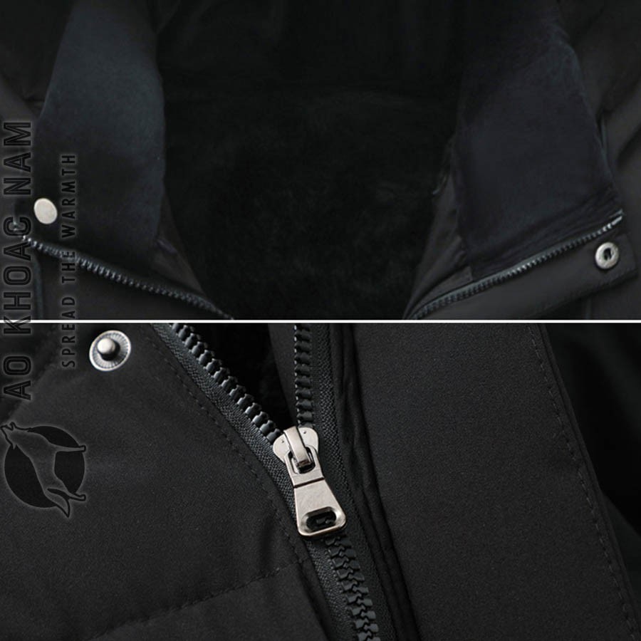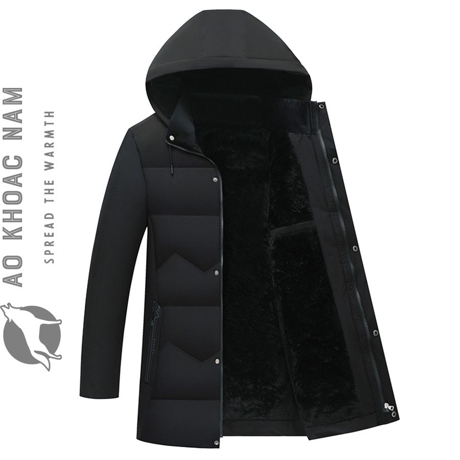 Sale - Áo phao nam lót lông hàng hiệu AKN-241 - Món quà ý nghĩa cho thu đông lạnh này. Áo thiết kế nam tính tối giản, kiểu dáng sang trọng lịch lãm, với form áo lửng dài trùm qua mông, mũ có thể tháo rời tiện lợi. Áo có 2 túi ngoài có khóa cùng 1 túi trong. Với lớp ngoài là vải gió, giữa trần bông siêu nhẹ siêu bền, trong cùng lót lông nhung mềm mại cực ấm. Áo có thể giặt máy, phù hợp mặc tầm 0-12 độ.